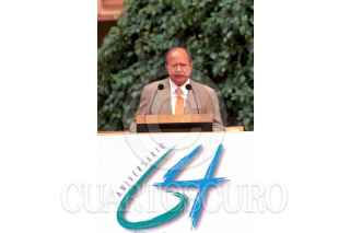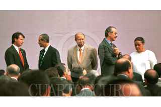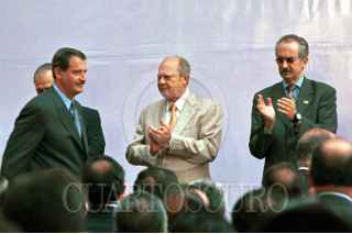 Carlos Romero Deschamps, lider del sindicato de trabajadores de Petroleos Mexicanos, acusado por la Secodam de desvio de fondos de la paraestatal para financiar la campaña de Francisco Labastida, habló durante la ceremonia del LXIV Aniversario de la Expropiación Petrolera. FOTO: Oswaldo Ramírez/CUARTOSCURO.COM