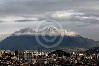 MONTERREY, NUEVO LEÓN, 29ENERO2016.- La mañana del miercoles 27 de enero de 2016 la cima del cerro de la Silla se tiñó de blanco, la masa de aire polar del frente frío No. 34 provocó nieve y bajas temperaturas en su paso en los estados de Durango, Nuevo León y Zacatecas. FOTO: ALFONSO ALARCÓN /ARCHIVO/CUARTOSCURO.COM