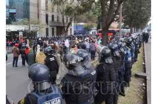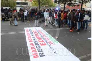 MÉICO, D.F., 29ENERO2016.- Un grupo de campesinos se manifestaron afuera de las oficinas de las Confederación nacional de propietarios Rurales en la lateral de la avenida Chapultepec y Valladolid en la colonia Roma, quienes rompieron los vidrios de las instalaciones, por lo que fueron acordonados por granaderos de la SSP DF. FOTO: ARMANDO MONROY /CUARTOSCURO.COM