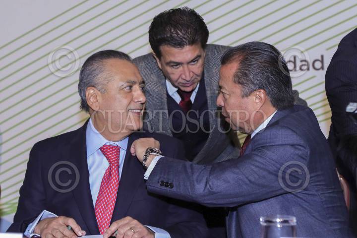 MÉXICO, D.F., 29ENERO2016.- Manlio Fabio Beltrones saluda a Miguel Ángel Osorio Chong durante la segunda reunión plenaria del PRI-PVEM. FOTO: CUARTOSCURO.COM