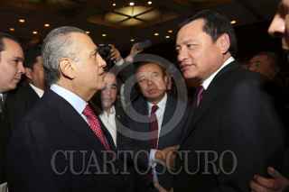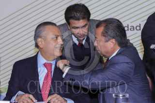 MÉXICO, D.F., 29ENERO2016.- Manlio Fabio Beltrones saluda a Miguel Ángel Osorio Chong durante la segunda reunión plenaria del PRI-PVEM. FOTO: CUARTOSCURO.COM