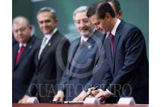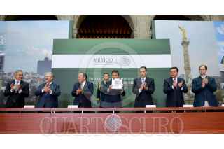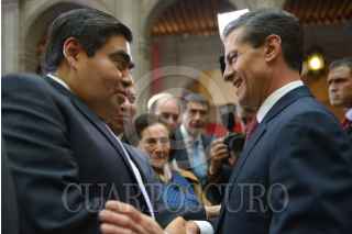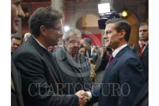 MÉXICO, D.F., 29ENERO2016.- Los senadores del PRD Miguel Barbosa y Armando Ríos Piter, y Porfirio Múñoz Ledo, asistieron a la ceremonia de la promulgación de la Reforma Política de la Ciudad de México encabezada por el Presidente Enrique Peña Nieto. FOTO: PRESIDENCIA /CUARTOSCURO.COM