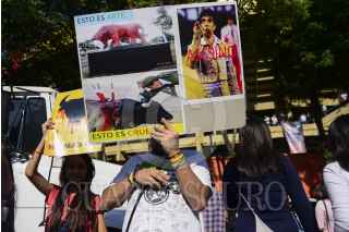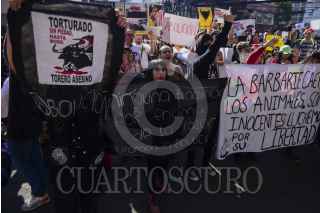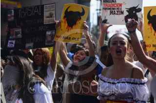 CIUDAD DE MÉXICO, 31ENERO2016.- Decenas de manifestaste realizaron una protesta pacifica en las inmediaciones de la Monumental Plaza de toros México, en la cual exigían la abolición de la Fiesta Brava. En la Plaza de Toros se vive hoy una de las más importantes corridas, ya que la plaza recibirá al torero español José Tomas, todas las localidades se vendieron poco tiempo después de salir a la venta. FOTO: ISABEL MATEOS /CUARTOSCURO.COM