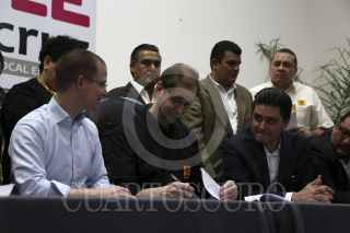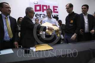 XALAPA,VER., 31ENERO16.- Se registran ante el Órgano Público Local Electoral (OPLE) el Partido Acción Nacional (PAN) y el Partido de la Revolución Democrática (PRD) para conformar la coalición "Unidos para rescatar Veracruz" de cara a las elecciones del próximo mes de junio del presente año, a su vez Miguel Ángel Yunes Linares se registró también como precandidato a la gubernatura ante el Comité Estatal del Partido Acción Nacional (PAN) acompañado del dirigente del PAN en el país, Ricardo Anaya y el presidente del Comité Nacional del PRD, Agustín Basave. FOTO: ILSE HUESCA /CUARTOSCURO.COM