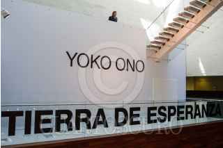 CIUDAD DE MÉXICO, 02FEBRERO2016.- La artista Yoko Ono posa para los fotógrafos, previo a la conferencia y recorrido para prensa de la exposición Tierra de Esperanza, en el Museo de la Memoria y Tolerancia. FOTO: FRANCISCO SEGURA /CUARTOSCURO.COM