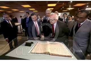CIUDAD DE MÉXICO, 02FEBRERO2016.- Diego Valadés, director del Instituto Iberoamericano de Derecho Constitucional, Francisco Valdés Ugalde, director de la Facultad Latinoamericana de Ciencias Sociales y Héctor Fix Fierro, investigador del Instituto de Investigaciones Jurídicas de la UNAM acompañado de César Camacho, coordinador del PRI en la Cámara de Diputados observan la promulgación de la Carta Magna que se encuentra expuesto en el vestíbulo principal del recinto legislativo de San Lázaro. FOTO: CUARTOSCURO.COM