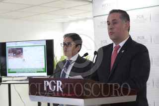CIUDAD DE MÉXICO, 02FEBRERO2016.- Salvador Muñoz Caño, titular de la Policía Ministerial de la Agencia de Investigación Criminal, y Gualberto Ramírez Gutiérrez, fiscal Antisecuestros, ofrecieron los detalles de un operativo en el poblado de Meyuca, municipio de Coatepec Harinas, Estado de México, donde lograron rescatar a la víctima con vida así como la detención de los presuntos secuestradores. FOTO: MOISÉS PABLO /CUARTOSCURO.COM