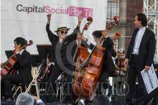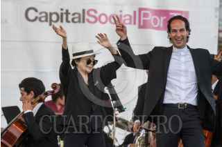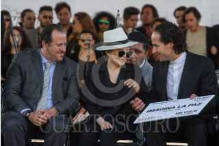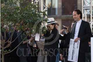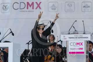 CIUDAD DE MÉXICO, 02FEBRERO2016.- La artista Yoko Ono inauguró la pieza "El árbol de los deseos" en el Zócalo capitalino, la cual forma parte de la exposición "Tierra de Esperanza". Durante la ceremonia, la viuda del músico John Lennon recibió un boleto conmemorativo del STC Metro y bailó con la orquesta Sinfónica Juvenil Ollin Yoliztli. FOTO: ISAAC ESQUIVEL /CUARTOSCURO.COM