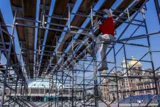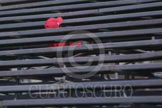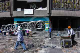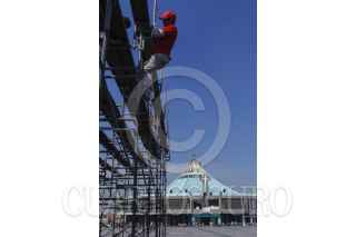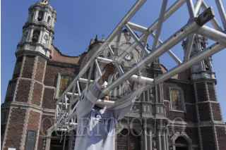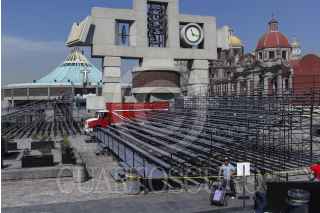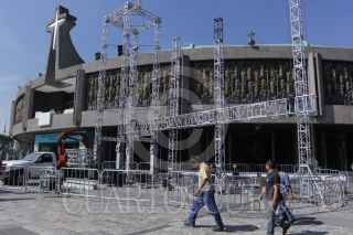 CIUDAD DE MÉXICO, 03FEBRERO2016.- Trabajadores continúan afinando los últimos detalles para la visita del Papa Francisco en la Basílica de Guadalupe, en el interior del recinto se colocaron vallas metálicas y gradas para la gente que asistirá. FOTO: ENRIQUE ORDÓÑEZ /CUARTOSCURO.COM