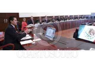 CIUDAD DE MÉXICO, 03FEBRERO2016.- El Presidente Enrique Peña Nieto, encabezó hoy, en la Residencia Oficial de Los Pinos, una reunión con miembros de su Gabinete y mandatarios de las entidades del país que visitará S.S. el Papa Francisco. Supervisó las acciones que se han realizado en materia de seguridad, logística, coordinación y protocolo, entre otras. FOTO: PRESIDENCIA /CUARTOSCURO.COM