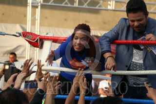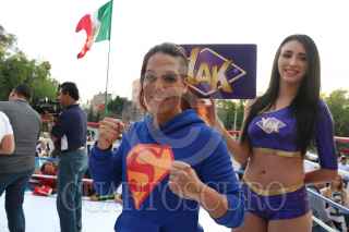 CIUDAD DE MÉXICO, 03FEBRERO2016.- La boxeadora mexicana Mariana "Barbie" Juárez durante la presentación de la pelea que sostendrá con la estadounidense Noemi Bosques el próximo 6 de Febrero en la Arena Coliseo. FOTO: SAÚL LÓPEZ /CUARTOSCURO.COM