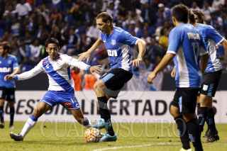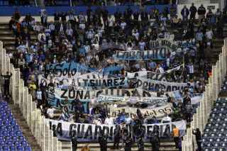 PUEBLA, PUEBLA, 03FEBRERO2016.- Porra del equipo argentino Racing durante el partido de la primera fase de la Copa Bridgestone Libertadores 2016 entre el Puebla de la Franja y el Racing de Avellaneda, celebrado en el Estadio Cuauhtémoc. FOTO: HILDA RÍOS/ CUARTOSCURO.COM
