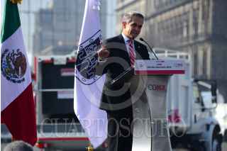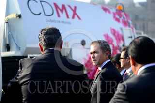 CIUDAD DE MÉXICO, 04FEBRERO2016.- El gobierno de la Ciudad de México pone en operación 15 barredoras mecánicas, 100 cajas de transferencia de residuos, y entregó 119 camiones recolectores a las 16 delegaciones. El jefe de gobierno Miguel Ángel Mancera insistió en que el gobierno capitalino seguirá invirtiendo en este rubro para mantener una ciudad limpia y con tecnología de punta, como los son las nuevas barredoras mecánicas. FOTO: ISABEL MATEOS /CUARTOSCURO.COM