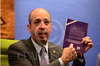 CIUDAD DE MÉXICO, 04FEBRERO2016.- El titular del Instituto de Investigaciones Jurídicas en la UNAM, Pedro Salazar Ugarte ofreció una conferencia titulada Que hacer con la Constitución Política de 1917 en 2017. Y presentó el proyecto que realizaron investigadores de este instituto donde se dieron a la tarea de realizar una revisión técnica al texto constitucional, en el cual no se realizaron cambios más que reescribirla de una forma más clara y ordenada titulada Constitución Política de los Estados Unidos Mexicanos, texto re ordenado y consolidado. Anteproyecto. FOTO: ISABEL MATEOS /CUARTOSCURO.COM