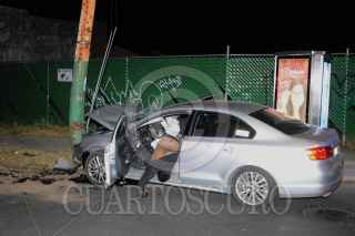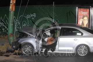 NAUCALPAN, ESTADO DE MÉXICO., 07FEBRERO2016.- Un hombre perdió la vida, al impactar el auto Jetta último modelo contra un poste en el que viajaba como copiloto, autoridades locales, investigan si dicho vehículo cuenta con reporte de robo. Los hechos, se registraron en Avenida de Las Fuentes y Fuente de Juana De Arco colonia Fuentes de Tecamachalco. FOTO: LUIS CARBAYO /CUARTOSCRO.COM