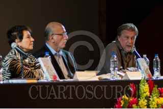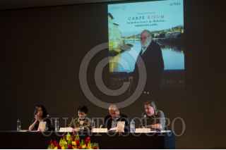CIUDAD DE MÉXICO, 07FEBRERO2016.- La maestra María Luisa Tavernier y los escritores Vicente Quirarte y Phillipe Ollé-Laprune presentaron la obra póstuma, “ Carpe risum. Inmediaciones de Rabelais”, del escritor y políglota mexicano, Ernesto de la Peña, obra que profundiza en la vida del escritor François Rabelais y compara su trabajo con el de Miguel de Cervantes Saavedra y William Shakespeare. El concepto “carpe risum” creado por Ernesto de la Peña hace referencia al disfrute de la risa y el goce profundo de estar vivo. FOTO: GALO CAÑAS /CUARTOSCURO.COM