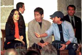 Salma Hayek, Jorge Campos y Adal Ramones, en la presentación del programa En tu Biblioteca", la cual se realizo en la biblioteca México. FOTO: Oswaldo Ramírez/CUARTOSCURO.COM