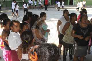 ACAPULCO, GUERRERO, 08FEBRERO2016.- Padres de familia de la escuela primaria Constituyentes de 1917; ubicada en la colonia La Parota, atrás del panteón de Las Cruces, advierten que ya no van a pagar el salario de tres maestros, responsabilidad que asumieron desde hace más de siete meses, pues existía falta de recursos económicos en la periferia del puerto. Criticaron que autoridades educativas no resuelvan el problema y que no asignen profesores sin importar las peticiones. El director del plantel, José Antonio Silva Andraca, señaló que a partir de abril de 2015, se jubilaron tres maestros de tres aulas, afectando a 86 niños de 323 inscritos en la escuela. Explicó que se acordó con padres y madres cooperar cinco o seis pesos diarios. Micaela Candela Rodríguez, vicepresidenta de la sociedad de padres, manifestó que se acordó con padres pagar a un maestro es una aportación voluntaria de 7 pesos, y cuestionó al gobierno federal: " ¿dónde esta la educación a la que está apostando el gobierno si no hay maestros?, ¡queremos maestros!" FOTO: BERNANDINO HERNÁNDEZ /CUARTOSCURO.COM