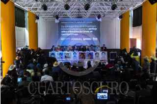 CIUDAD DE MÉXICO, 09FEBRERO2016.- Mercedes Doretti y Miguel Nieva, integrantes del Equipo Argentino de Antropologia Forense (EAAF) en compañía de Padres de Familia de los 43 normalistas desaparecidos en Ayotzinapa, familiares y amigos y organizaciones sociales, rindieron el informe final sobre las investigaciones realizadas en el Basurero de Cocula en Guerrero donde presuntamente fueron quemados los estudiantes. FOTO: ENRIQUE ORDÓÑEZ /CUARTOSCURO.COM