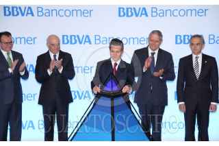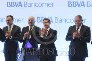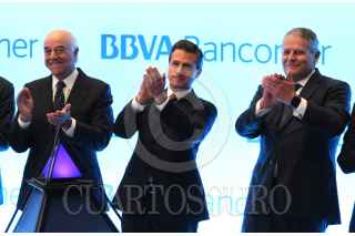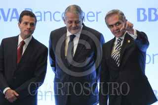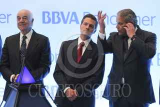 CIUDAD DE MÉXICO, 09FEBRERO2016.- Enrique Peña Nieto, Presidente de México, saluda al público capitalino despues de la ceremonia de inauguración de la Torre Coorporativa de BBVA Bancomer en Paseo de la Reforma. FOTO: ADOLFO VLADIMIR /CUARTOSCURO.COM