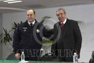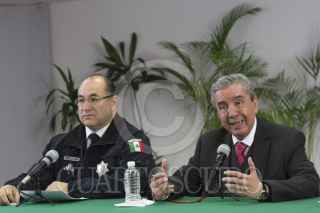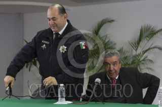 CIUDAD DE MÉXICO, 10FEBRERO2016.- Enrique Galindo, titular de la Policía Federal, y Humberto Roque Villanueva, subsecretario de Población, Migración y Asuntos Religiosos, ofrecieron una rueda de prensa en la Secretaría de Gobernación para hablar sobre el operativo de seguridad en torno a la visita del Papa Francisco. FOTO: MOISÉS PABLO /CUARTOSCURO.COM