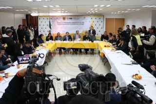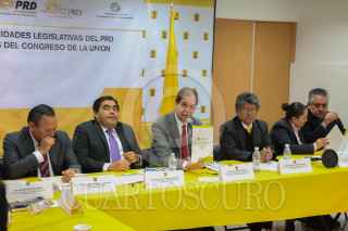 CIUDAD DE MÉXICO, 10FEBRERO2016.- Agustín Basave, presidente del PRD acompañado de los coordinadores de la Cámara de Diputados Francisco Martyínez Nerí y Miguel Barbosa Huerta coordinador del PRD en el Senado así como el presidente de la mesa directiva en el Congreso de la Unión, Jesús Zambrano Grijalva, se reunieron en la sede del partido para agendar prioridades legislativas y acuerdos del políticos. FOTO: SAÚL LÓPEZ /CUARTOSCURO.COM