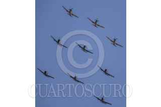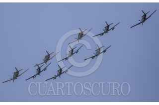 HERMOSILLO, SONORA, 10FEBRERO2016.- Aviones militares protagonizan un espectáculo aéreo por los festejos del 101 aniversario de la Fuerza Aérea Mexicana, celebrado en la Base Aérea Militar nº18, y los cuales fueron encabezados por el Jefe de Ejecutivo Enrique Peña Nieto. FOTO: MARGARITA GARCÍA /CUARTOSCURO.COM