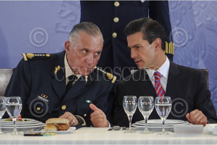 HERMOSILLO, SONORA, 10FEBRERO2016.- El presidente Enrique Peña Nieto presidió la Ceremonia del Día de la Fuerza Aérea Mexicana. Asistieron Miguel Ángel Osorio Chong, secretario de Gobernación, Vidal Francisco Soberón Sanz, secretario de Marina; y Salvador Cienfuegos Zepeda, secretario de Defensa. El evento se llevó a cabo en la Base 18 de la capital de este estado. FOTO: DIEGO SIMÓN SÁNCHEZ /CUARTOSCURO.COM