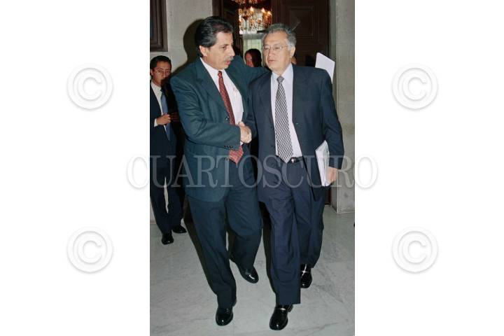 Diego Fernández de Cevallos conversa con Raymundo Cárdenas en la sesión del senado. FOTO: Juan Pablo Zamora/CUARTOSCURO.COM