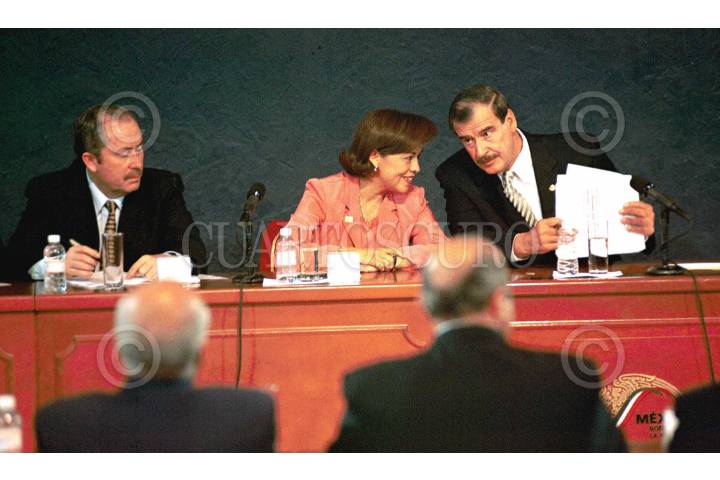 Los gobernadores de Zacatecas Ricardo Monreal, de Tamaulipas Tomás Yarrington de Tlaxcala Alfonso Sánchez Anaya y de Colima Fernando Moreno Peña, antes de la firma de Convenio de Desarrollo Social 2002. FOTO: Victoria Valtierra/CUARTOSCURO.COM