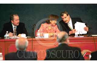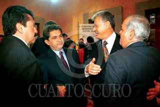 Los gobernadores de Zacatecas Ricardo Monreal, de Tamaulipas Tomás Yarrington de Tlaxcala Alfonso Sánchez Anaya y de Colima Fernando Moreno Peña, antes de la firma de Convenio de Desarrollo Social 2002. FOTO: Victoria Valtierra/CUARTOSCURO.COM