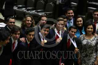 CIUDAD DE MÉXICO, 11FEBRERO2016.- Jesús Zambrano Grijalva, presidente de la mesa directiva de la Cámara de Diputados, recibieron a selección mexicana sub 20 de hockey sobre hielo en la Cámara de Diputados. FOTO: SAÚL LÓPEZ /CUARTOSCURO.COM