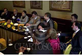 Benjamin Fernandez Pichardo y José Isabel Ramos director de El Debate de Sinaloa conversan durante la presentación de los miembro jurado y del consejo técnico calificador para el primer premio Nacional de Periodismo organizado por el Consejo Ciudadano del Premio Nacional de Periodismo AC. Foto: Cuartoscuro.com