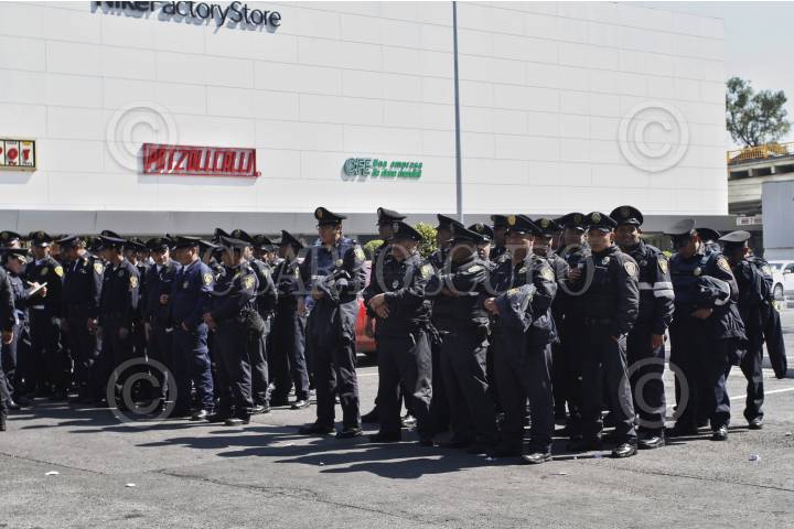 MÉXICO, D.F., 12ENERO2015.- Decenas de policías de la Secretaría de Seguridad Pública capitalina y elementos de la Gendarmería Nacional vigilan las inmediaciones del aeropuerto y el boulevard puerto aéreo, donde se espera que pase el Papa Francisco, durante su recorrido con rumbo a la Nunciatura Apostólica. Se esperan cortes a la circulación sobre circuito interior y las avenidas que lo cruzan aproximadamente a las cuatro de la tarde. FOTO: DIEGO SIMÓN SÁNCHEZ /CUARTOSCURO.COM