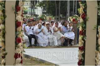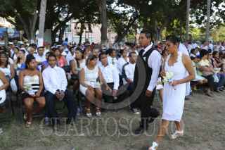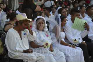 ACAPULCO, GUERRERO, 13FEBRERO2016.- el DIF estatal celebro unas bodas masivas en el puerto de Acapulco donde varios municipios se dieron cita por la cercanía del día del amor y la amistad. Una pareja de nombre Maria Rafaela Flores y su esposo Wilfredo Monico Cruz, ambos de xochistlahuaca Guerrero, bailaron, brindaron y partieron pastel de bodas. FOTO: BERNANDINO HERNÁNDEZ /CUARTOSCURO.COM