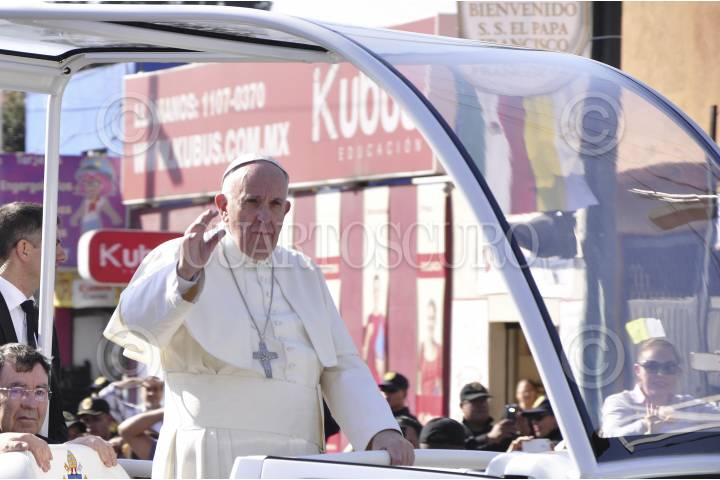 CIUDAD DE MÉXICO, 13FEBRERO2016.- El papa Francisco saluda a cientos de personas las cuales forman una valla humana en su recorrido sobre la Eje Central rumbo a la Basílica en donde realizó una misa. FOTO: MIGUEL ÁNGEL VALERA /CUARTOSCURO.COM