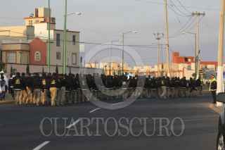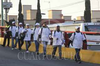 ECATEPEC, EDOMEX, 13FEBRERO2016.- Cientos de feligreses comienzan a abarrotar los accesos del predio "El Caracol" esperando la apertura de las puertas para tener un lugar cerca de el Papa en la Santa Misa. Policías de distintas corporaciones comenzaron con los cortes a la circulación asi como la vigilancia en el perímetro de las Américas para brindar mayor seguridad, vendedores aprovechan para ofertar artículos con la imagen de su Santidad. FOTO: DIEGO REYES /CUARTOSCURO.COM