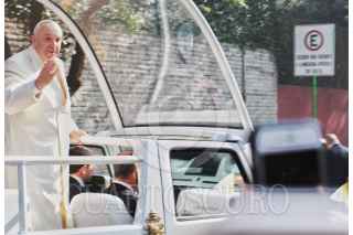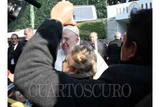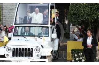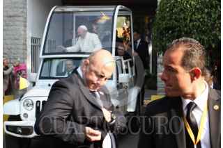 CIUDAD DE MÉXICO, 14FEBRERO2016.- El Papa Francisco abandonó hace aproximadamente 20 minutos la Nunciatura Apostólica. Antes de abordar el Papamóvil saludo a las personas que se encontraban esperándolo afuera sobre la calle Juan Pablo II. FOTO: MARÍA JOSÉ MARTÍNEZ /CUARTOSCURO.COM