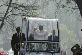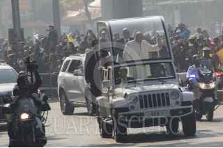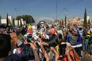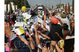 ECATEPEC, ESTADO DE MÉXICO., 14FEBRERO2016.- El papa Francisco recorre las avenidas de Ecatepec abordo del Papamovil tras su llegada a Estado de México donde oficiara una misa en un predio de 60 hectáreas adjunto al Centro de Estudios Superiores de Ecatepec. FOTO: SAÚL LÓPEZ /CUARTOSCURO.COM