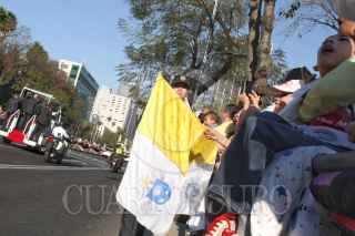 CIUDAD DE MÉXICO, 14FEBRERO2016.- Después de oficiar una misa multitudinaria en Ecatepec, Estado de México, el Papa Francisco continuó su recorrido sobre Paseo de la Reforma saliendo de Campo Marte rumbo al Hospital Infantil Federico Gómez en donde se reunirá con niños delicados de salud. FOTO: MARÍA JOSÉ MARTÍNEZ /CUARTOSCURO.COM