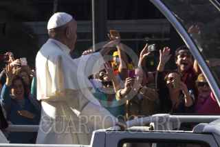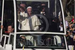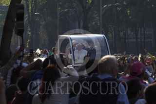 CIUDAD DE MÉXICO, 14FEBRERO2016.- El Papa Francisco realizó un recorrido por el Paseo de la Reforma dando vuelta en la Glorieta del Ángel de la Independencia luegod e regresar de una visita que realizó en el Esyado de México. FOTO: ENRIQUE ORDÓÑEZ /CUARTOSCURO.COM