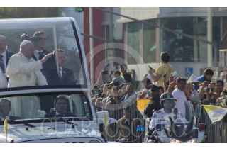 CIUDAD DE MÉXICO, 14FEBRERO2016.- Momento en que el Papa Francisco saludo a los fieles asistentes a su recorrido por avenida Chapultepec, cerca de metro Cuauhtémoc, camino al Hospital Infantil de México. FOTO: GALO CAÑAS /CUARTOSCURO.COM
