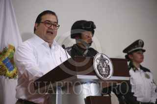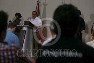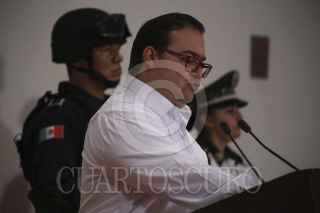 BOCA DEL RÍO, VERACRUZ, 15FEBRERO2016.- El gobernador de Veracruz, Javier Duarte de Ochoa ofreció una rueda de prensa donde mencionó a todos los supuestos delincuentes que se han atrapado o finado hasta el momento; afirmó que la autoridad no está rebasada por la delincuencia y que el actual Secretario de seguridad, Arturo Bermúdez no va a ser cambiado. FOTO: ILSE HUESCA /CUARTOSCURO.COM