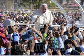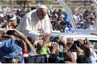 SAN CRISTOBAL DE LAS CASAS, CHIAPAS,15FEBRERO2016.- El Papa Francisco durante su recorrido en el centro deportivo donde oficio una misa con las comunidades indigenas. FOTOS: ELIZABETH RUIZ /CUARTOSCURO.COM