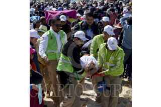 SAN CRISTÓBAL DE LAS CASAS, CHIAPAS, 16FEBRERO2016.- Una persona es sacada por elementos de seguridad despues de que se desmayara en la misa del Papa Francisco. FOTO: ELIZABETH RUIZ /CUARTOSCURO.COM