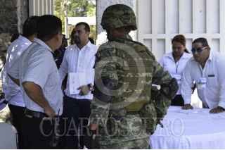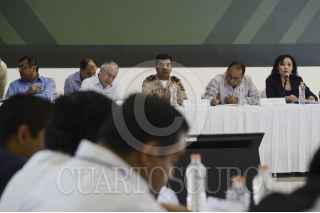 CHILPANCINGO, GUERRERO, 15FEBRERO2016.- El gobernador Héctor Astudillo Flores, Secretario General de Gobierno Florencio Salazar Adame, el general Alejandro Saavedra Hernández, Ruth Zavaleta Salgado, Lourdes Edith Orozco Urrutia y Almirante Juan Guillermo Ferro Rocha, en reunión privada del Consejo de Seguridad Publica, donde estuvieron presente alcaldes de los municipio que conforman Guerrero “ El tema la creación de única en el estado. En la reunión se permitió un instante el acceso a los reporteros, que se llevo acabo en la Sala de la República en la residencia oficial del Gobierno (Casa Guerrero). FOTO: JOSÉ I. HERNÁNDEZ /CUARTOSCURO.COM