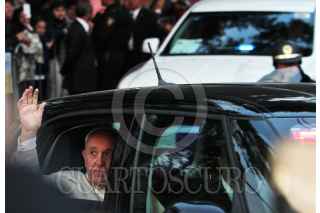 CIUDAD DE MÉXICO, 16FEBRERO2016.- Esta mañana el Papa Francisco salió de la Nunciatura Apostólica rumbo a Morelia, Michoacán. A su salida saludó a los cientos de espectadores que lo esperaban sobre Avenida Insurgentes. FOTO: ARMANDO MONROY /CUARTOSCURO.COM
