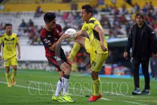 GUADALAJARA, JALISCO. 16FEBRERO2015.- Leandro Lujan jugador de Murciélagos disputa un balón a Felipe Baloy de Atlas, durante el partido correspondiente a la Jornada 4 del Torneo Clausura 2016 de la Copa MX, entre los Zorros del Atlas y los Murciélagos de los Mochis, en el estadio Jalisco. FOTO : FERNANDO CARRANZA GARCIA / CUARTOSCURO