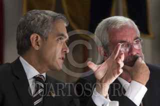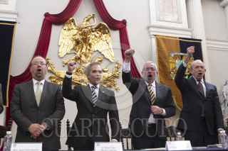 CIUDAD DE MÉXICO, 17FEBRERO2016.- Enrique Fernandez Fassnacht, director del IPN y el rector de la UNAM Enrique Graue, durante la ceremonia de inauguración de la 36 Feria Internacional del Libro del Palacio de Minería, la cual se llevará a cabo del 17 al 29 del mes en curso. FOTO: MOISÉS PABLO /CUARTOSCURO.COM