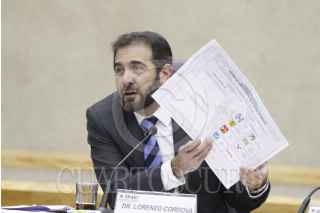 CIUDAD DE MÉXICO, 17FEBRERO2016.- Lorenzo Córdova, consejero presidente del Instituto Nacional Electoral, muestra la boleta para elegir a los diputados de la Asamblea Constituyente de la Ciudad de México en la sesión. FOTO: CUARTOSCURO.COM